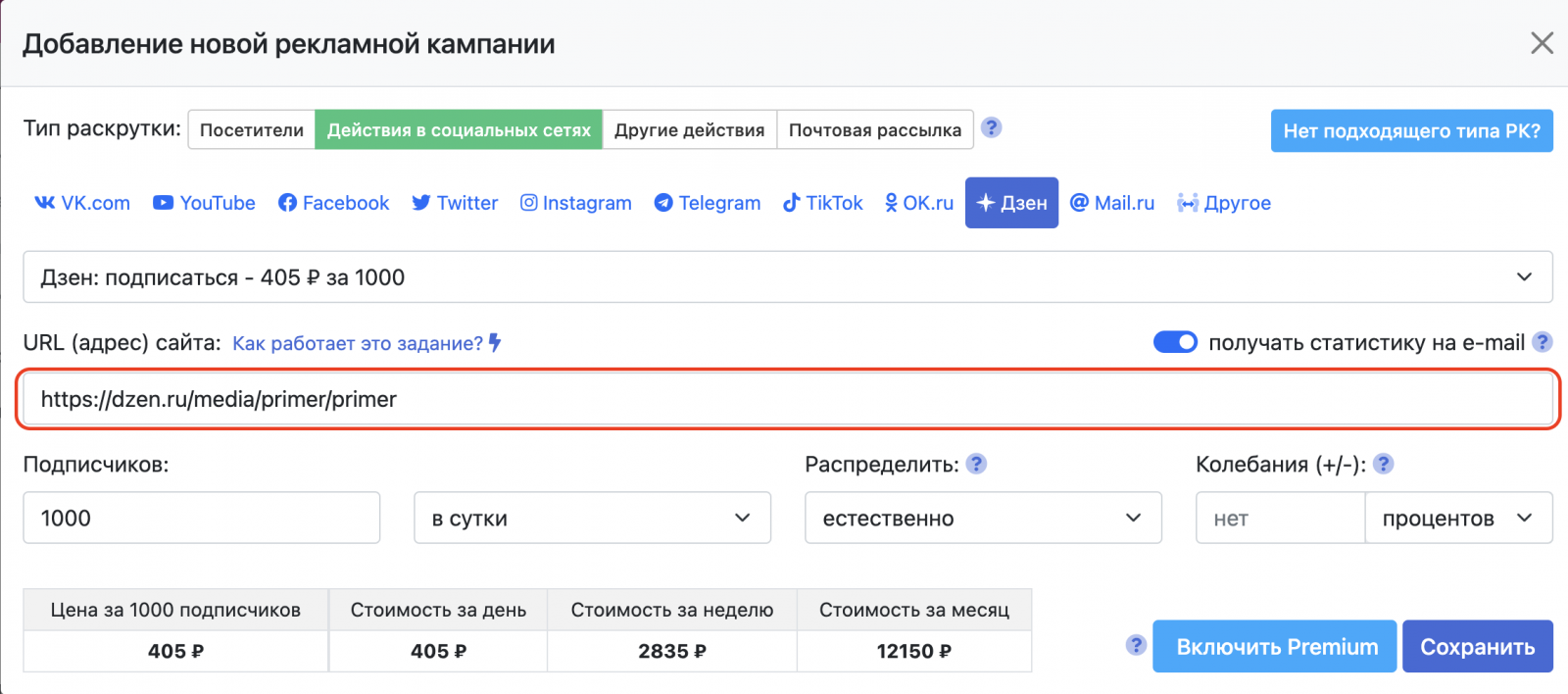 Зайдите в свой аккаунт на IPweb. В меню слева кликните «Продвижение» — «Мои кампании» — «Добавить рекламную кампанию» — «Действия в социальных сетях» — «Дзен» — «Дзен: подписаться».