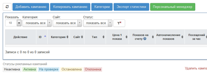 Затем откройте страницу «Мои кампании» и нажмите кнопку «Добавить рекламную кампанию».
