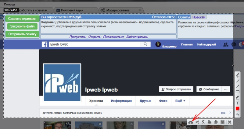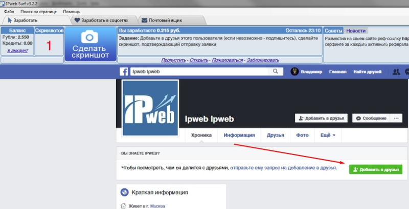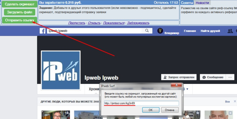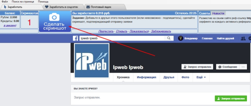 Здесь вам предлагается добавить в друзья пользователя Facebook. Нажмите на кнопку «Добавить», сделайте скриншот, когда надпись на ней изменится на «Отменить запрос», и отправьте на проверку.