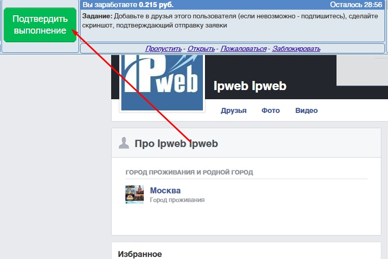 В таком задании вам предлагается подписаться на группу Facebook. Нажмите на синюю кнопку «Присоединиться к группе», как показано на скриншоте. После того, как надпись сменится на «+ Пригласить», сделайте скриншот и отправьте на проверку.