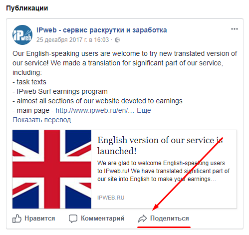 Важно! Выполняя любое задание с репостом в Facebook, убедитесь, что вы делитесь этой записью в профиле/на странице со статусом «Доступно всем». Если репост будет доступен только друзьями или в личном сообщении, вы не получите оплату за выполнение работы.