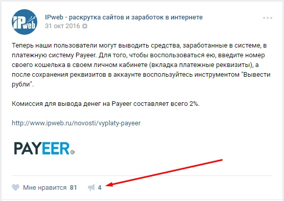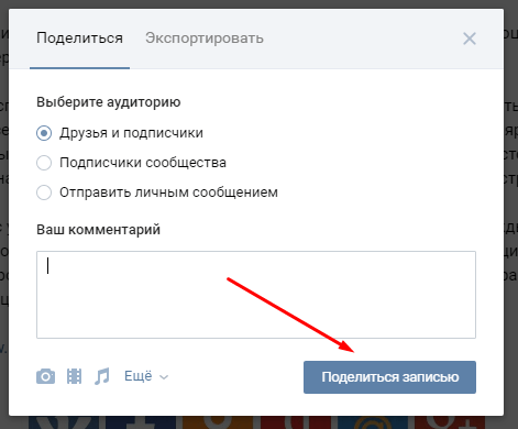 Этот вид заданий практически ничем не отличается от вида «Нравится любая запись на странице» за исключением того, что вместо лайка нужно нажать на кнопку «Поделиться» под любой записью на предложенной странице, а затем подтвердить публикацию этой записи на своей стене.