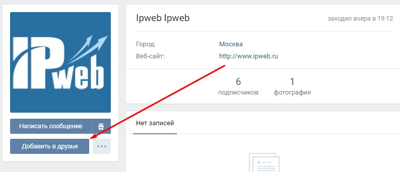 В случае с заданием этого типа вы увидите страницу группы ВКонтакте.
