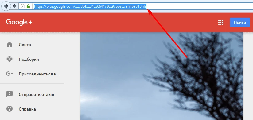 Если вы хотите добавить рекламную кампанию по продвижению поста (публикации) в социальной сети Google +, то, как и в других случаях, вам прежде всего понадобится ссылка на эту публикацию. В отличие от других кампаний, для Google + есть два способа, которыми ее можно получить. Во-первых, вы можете открыть публикацию напрямую в отдельном окне – тогда способ получения ссылки ничем не будет отличаться от других кампаний (просто скопируйте ее из адресной строки, как показано на картинке).