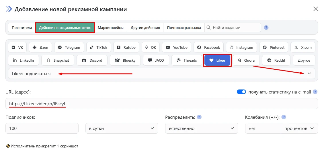 Если вы хотите увеличить количество подписчиков на свой аккаунт Likee, вам подойдёт кампания «Likee: подписаться».