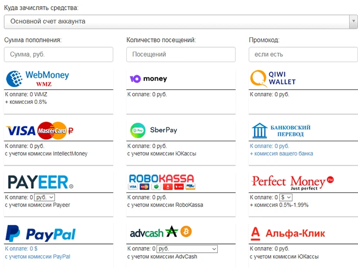 Для того что бы оплатить или пополнить счет, необходимо перейти по вкладкам меню – "Раскрутка" – "Пополнить счет".