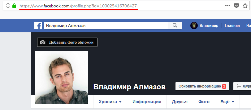 Откройте свою страницу на Facebook и скопируйте содержимое адресной строки.