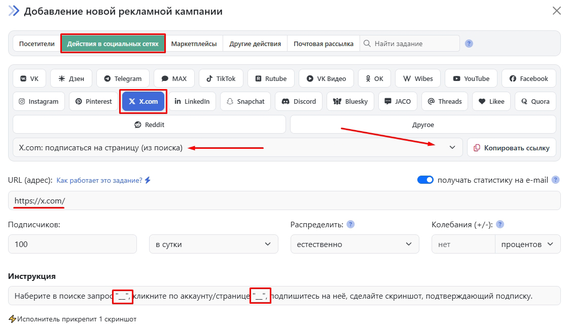 Введите ссылку на страницу кампании (или личный профиль), количество подписчиков в нужный период и нажмите кнопку «Сохранить». О том, как настроить другие параметры рекламной кампании, рассказываем здесь.