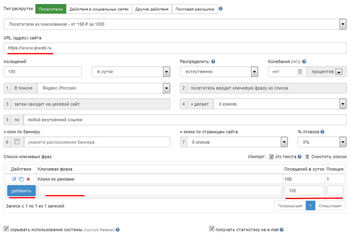 Внимание! При заказе посетителей из поисковой выдачи, ваш сайт должен быть на одной из первых десяти страниц, чтобы пользователи могли его найти.