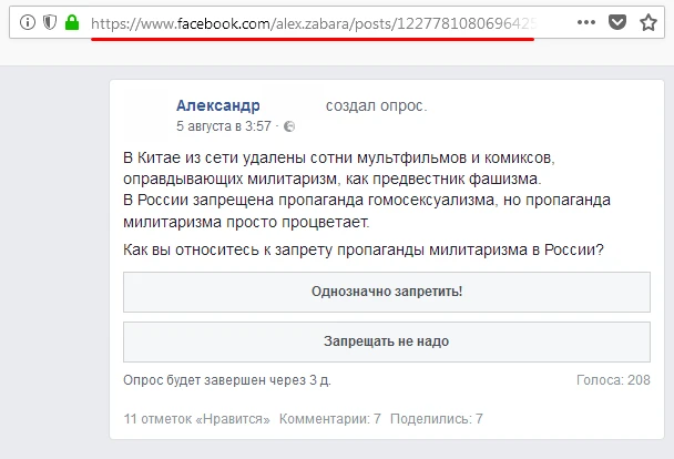 Ссылка на голосование или опрос на Facebook выглядит так: