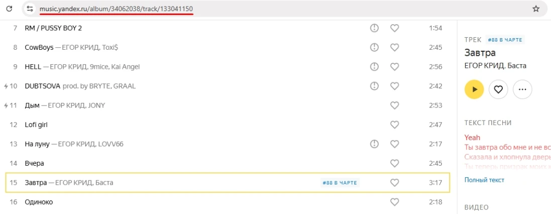 Для того чтобы создать рекламную кампанию, скопируйте ссылку в карточке Яндекс Музыки.