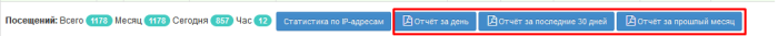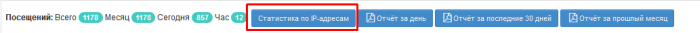 Здесь же под кнопкой «Статистика по IP-адресам» доступна подробная статистика посещаемости за текущий день - с указанием точного времени выполнения, местоположения и IP-адреса посетителя. При необходимости, вы можете сверить эту информацию с логами вашего веб-сервера.