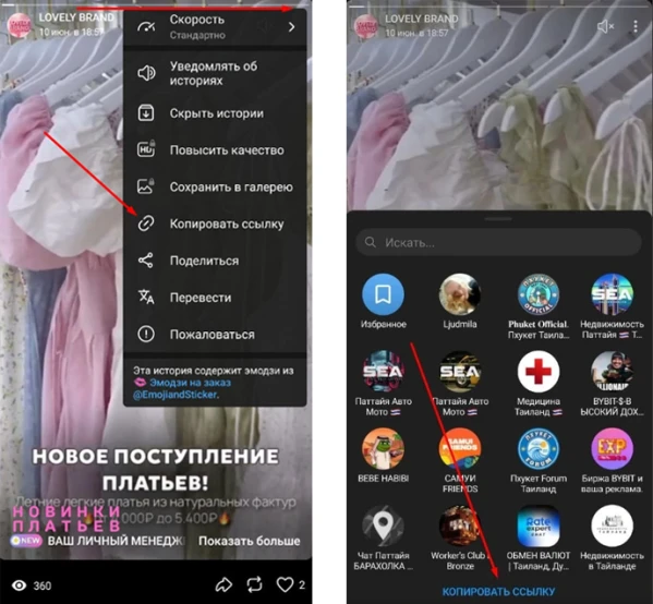Чтобы создать кампанию, необходимо получить ссылку на историю. Для этого откройте нужную историю, кликните в правом верхнем углу на три точки и нажмите кнопку «Копировать ссылку». Либо сделайте это через стрелку репоста внизу истории.
