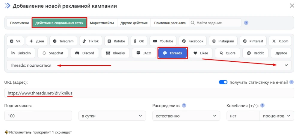 Threads – это социальная сеть для микроблогов от создателей Facebook. Если вы хотите увеличить количество подписчиков на свой аккаунт Threads, вам подойдёт кампания «Threads: подписаться».