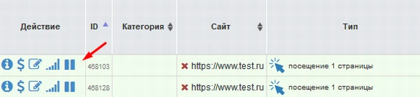 Если у вас уже есть созданная рекламная кампания, но по каким-либо причинам ее необходимо временно отключить, то вы можете воспользоваться иконкой в управляющем окне “остановить кампанию / запустить кампанию” "Раскрутка" - "Ваши сайты" Остановить показ рекламной кампании: